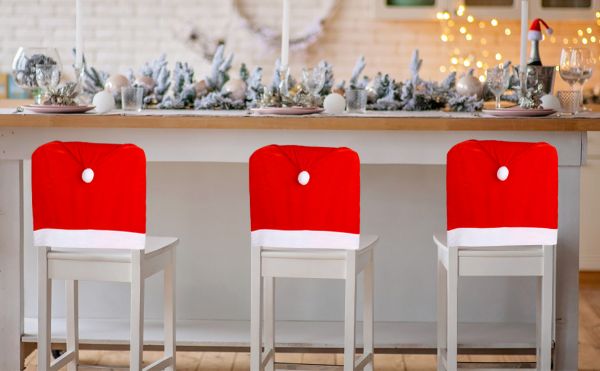 paredzēti Ziemassvētku tematikas krēslu atzveltnes dekorēšanai ēdamistabās.