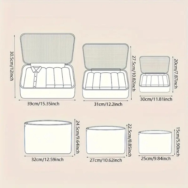 Ar dažādiem izmēriem dažādām vajadzībām, šie organizatori palīdz atdalīt un glabāt visdažādākos nepieciešamos priekšmetus. Lielās somas der apģērbam, apaviem un aksesuāriem, savukārt mazākās somiņas ir ideāli piemērotas tehnoloģiju sīkrīkiem, kabeļiem vai uzkodām!