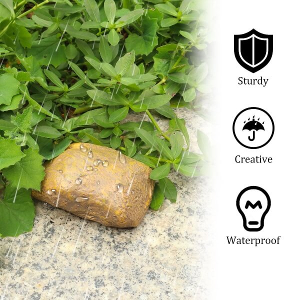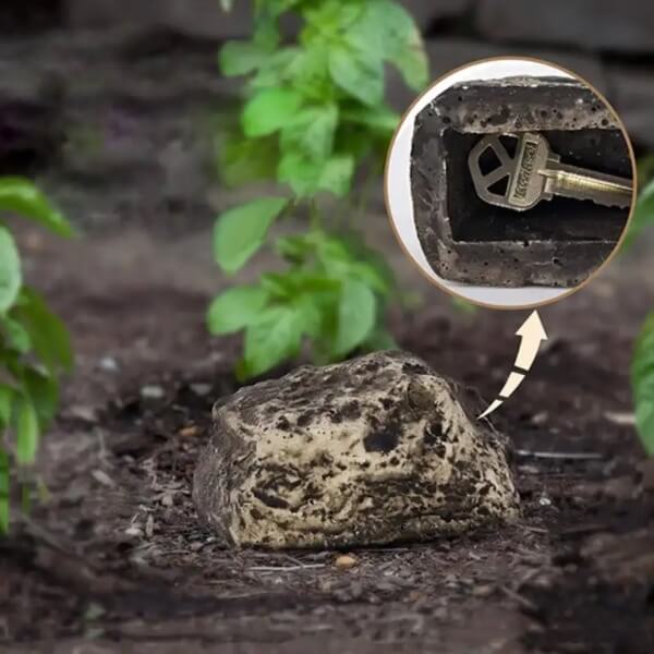 Šis akmens formas atslēgu turētājs lieliski iekļaujas āra vidē, nodrošinot, ka atslēga paliek drošībā un paslēpta.