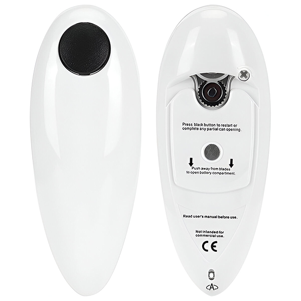 Vienkārši nospiediet pogu, lai ātri un droši atvērtu dažāda izmēra bundžas. Ideāli piemērots ikvienam, arī cilvēkiem ar artrītu vai roku sāpēm.