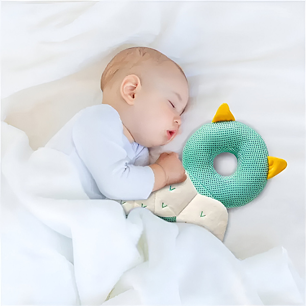 Šo mīksto un omulīgo mazuļa galvas spilvenu var izmantot kā nomierinošu pavadoni mazuļa gulētiešanas un gulētiešanas laikā. Plīšainais, elpojošais materiāls ir saudzīgs pret mazuļa ādu, nodrošinot, ka viņam ir ērti un mierīgi. Šī pazīstamā, mājīgā klātbūtne palīdz nomierināt jūsu mazuli, atvieglojot viņam atpūsties un aizmigt.