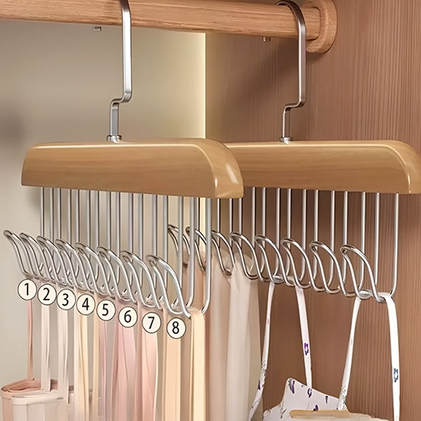 Esat noguris no pārblīvētiem krūšturiņiem un kaklasaitēm, kas aizņem nevajadzīgu vietu? Mūsu OCTAHANGER ar 8 āķīšiem ir izstrādāts, lai pārveidotu jūsu apģērbu uzglabāšanas vietu, saglabājot apakšveļu un aksesuārus glīti sakārtotus un eleganti izkārtotus.