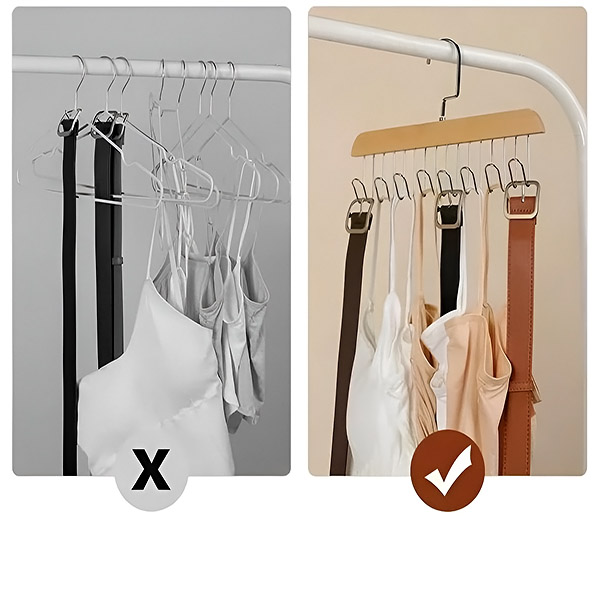 Efektīvi sakārtojiet un optimizējiet savu garderobes telpu ar mūsu gudro pakaramo dizainu. Atvadieties no nesakārtotām garderobes skapjiem un sapinušiem aksesuāriem un izbaudiet jaunu organizācijas līmeni.