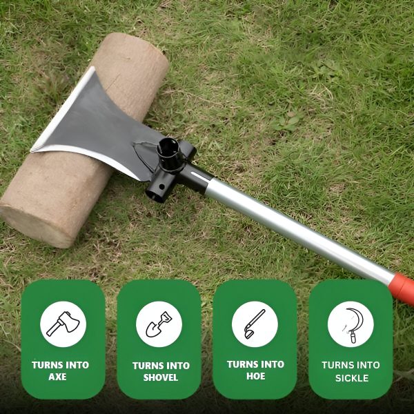 Pārveidojiet VERSAX par cirvi, kapli, sirpi vai lāpstu ar regulējamām roktura pozīcijām, kas ir ideāli piemērots jebkuram dārzkopības vai āra darbam.