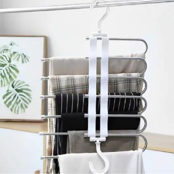 Saskaņojiet savu garderobi un baudiet perfektu kārtību. Nodrošiniet, lai jūsu drēbes vienmēr būtu kārtībā un sasniedzamas ar mūsu daudzpusīgo 5 ātrumu bikšu pakaramo!