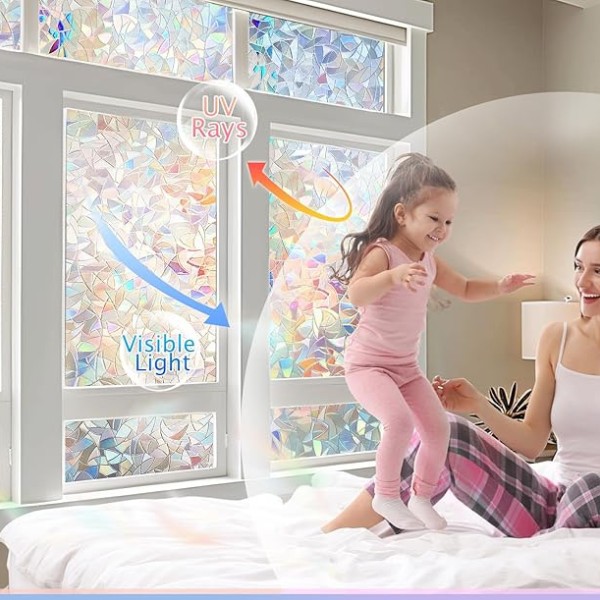 Kad saules gaisma nokļūst uz plēves, tā rada hipnotizējošu varavīksnes krāsu gammu visā telpā, taču neaizslēdz dabisko gaismu. Šī plēve labi darbojas jebkurā telpā – dzīvojamās istabās, vannas istabās, birojos un pat stikla durvīs, padarot to par universālu risinājumu dažādām telpām.