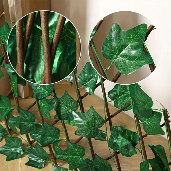 Nav nepieciešama laistīšana, apgriešana vai krāsas izbalēšana. Ar UV stabilizētu, laikapstākļu izturīgu efeju jūsu telpa paliek zaļa un svaiga visu gadu bez uzturēšanas.