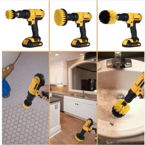 Šo profesionālo 3 gab. komplektu var izmantot gan telpās, gan ārpus telpām. Drillbrush galviņas ir lieliski piemērotas virtuves virsmu, vannasistabas virsmu, vannu, dušu, izlietņu, flīžu, javu, stikla šķiedras, mājas, automobiļu, laivu un apvidus automobiļu interjeru tīrīšanai.
