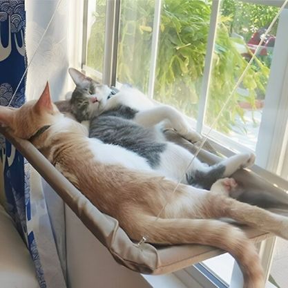 Kaķiem patīk augstums, tāpēc šis piekaramais šūpuļtīkls viņus sajūsmos. Taču suņiem to var izmantot mazākā augstumā 🙂