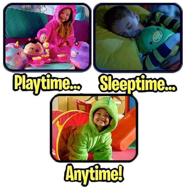 Kad ir pienācis laiks gulēt, viegli pārveido kapuci atpakaļ par pildītu dzīvnieku. Tas ir tik vienkārši kā 1-2-3. PILLOWPET ir ideāls tava bērna sabiedrotais miega, filmu vakaru un samīļošanas laikā. To var izmantot arī kā spilvenu, ceļā vai omulīgam samīļošanai gultā.