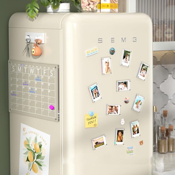 Četri spēcīgu magnētu pāri droši notur fotogrāfijas uz jebkuras magnētiskās virsmas, stabili noturot tās savā vietā pat tad, ja bieži tiek atvērtas ledusskapja durvis.