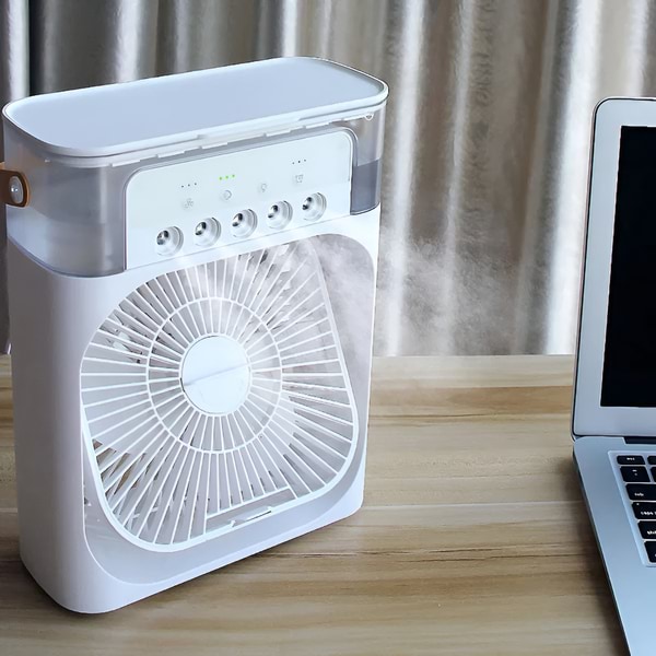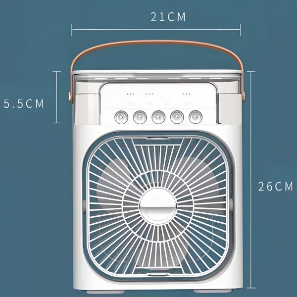 Šis portatīvais gaisa kondicionieris apvieno ventilatoru, gaisa kondicionētāju, aromātisko difuzoru, nakts gaismu un mitrinātāju vienā ierīcē, nodrošinot komfortu jebkurā telpā visa gada garumā.
