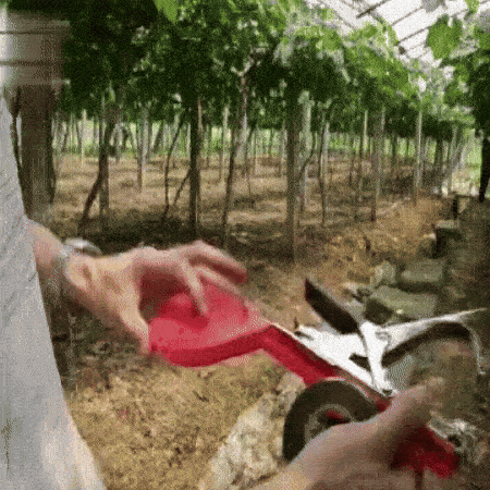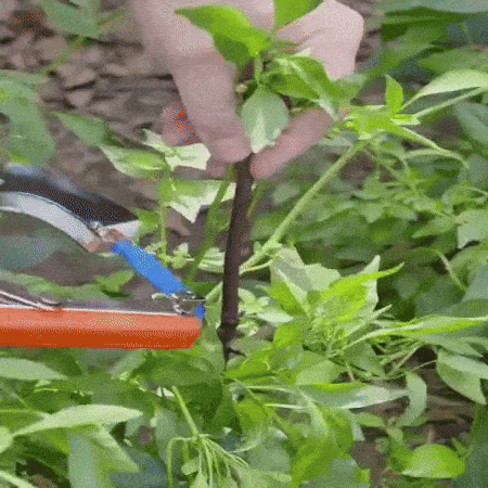 Vienkārši nospied rokturi, lai izstieptu siksnu starp knaiblēm. Tad lenti aptin ap augu, kuru vēlies piesiet. Vēlreiz nospied rokturi, lai pievilktu un nogrieztu lenti. Ļoti viegli – nav jāuztraucas par augu sabojāšanu vai sāpju rašanos, jo lente un skavotājs nodrošina maigu, bet stingru satvērienu.