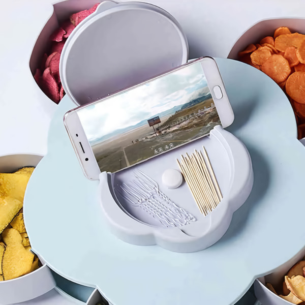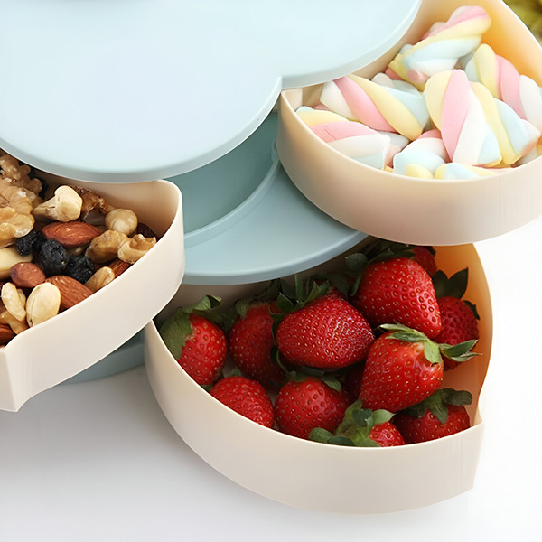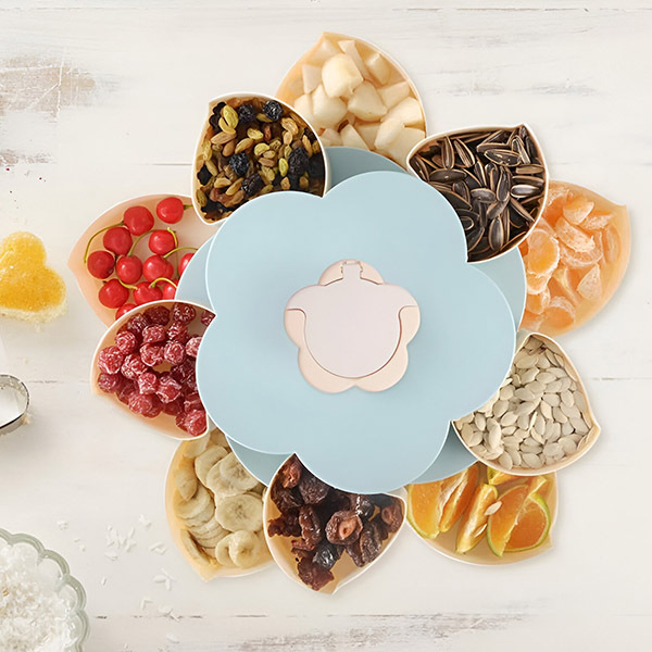 Vairāki nodalījumi ļauj uzglabāt visdažādākos priekšmetus, sākot no konfektēm, cepumiem, žāvētiem augļiem, olīvām, siera gabaliņiem un citām uzkodām.