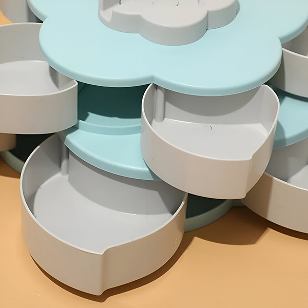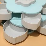 Divslāņu uzglabāšanas kārba, kas atveras kā zieds, ļauj viegli organizēt virtuvi un ietaupīt vietu.