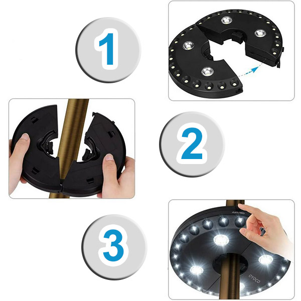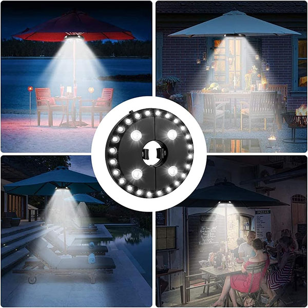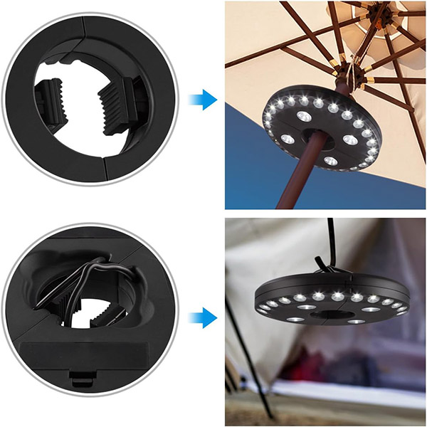 Atšķirībā no standarta lietussargu gaismām, BRELLAGLO darbojas jebkur, kur jums tas nepieciešams. Piestipriniet to pie lietussarga terases apgaismojumam vai izmantojiet iebūvētos āķus, lai pakarinātu—ideāli piemērots kempingam un āra piedzīvojumiem.