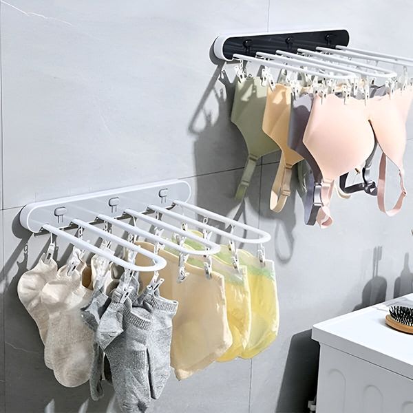 Šis plaukts izvēršas, lai žāvētu vairākus priekšmetus, un, kad netiek lietots, salokās līdzeni pie sienas, saglabājot jūsu telpu sakoptu un efektīvu.